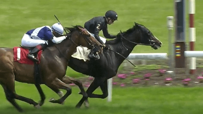 Photo: Now and Later breaking his maiden on July 1, 2023 Delaware Park with jockey Feargal Lynch aboard.