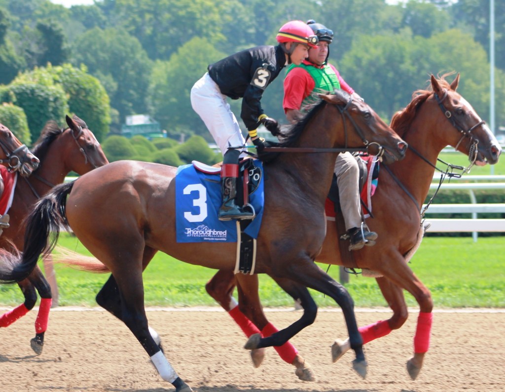 Above: Dance Club with jockey Jose Ortiz aboard before her career debut at Saratoga.