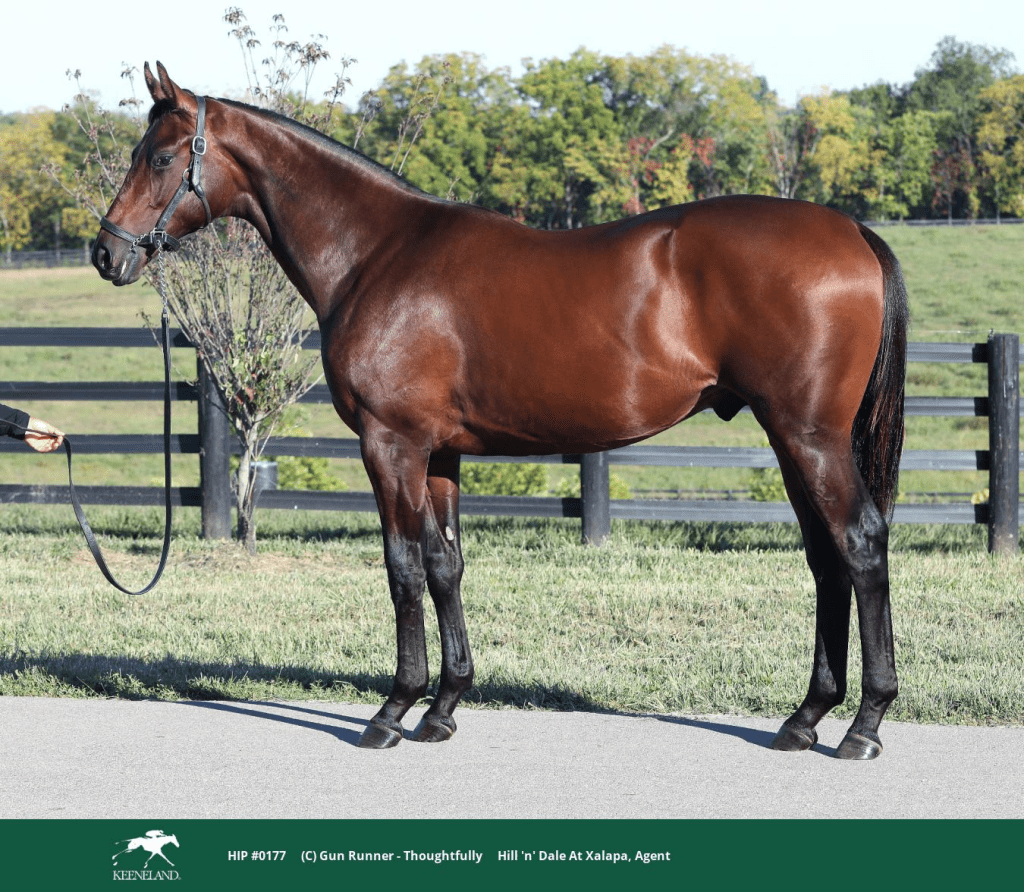 In addition to the eight sold yearlings from Phipps families, Hip 174, a Gun Runner colt out Arch mare Nonna Mela fetched a hefty top bid of $875,000 but did not meet his reserve for consignor Hill ‘n’ Dale at Xalapa. The colt’s third through tenth dams are Phipps, from the Mr. Prospector mare Get Lucky’s branch of Baby League. Grade 1-winning sires from the family of Get Lucky include WinStar Farm’s 2010 Kentucky Derby (G1) winner Super Saver, by Maria’s Mon; WinStar’s 2006 Haskell Invitational Stakes (G1) winner Bluegrass Cat, by Storm Cat, who also finished runner-up in the Kentucky Derby (G1) and Belmont Stakes (G1); Godolphin’s 2010 Vosberg Stakes (G1) winner Girolamo, by A.P. Indy; and, Phipps Stable’s homebred 2014 Man o’ War Stakes (G1) winner Imagining, by Giant’s Causeway. Other top-level winners from the family include Hill ‘n’ Dale and Philip Steinberg’s homebred 2015 Spinster Stakes (G1) winner Got Lucky, by A.P. Indy; Spendthrift Farm’s 2015 Las Virgenes Stakes (G1) winner Callback, by Street Sense; and, Repole Stable’s 2022 Frizette Stakes (G1) winner Chocolate Gelato, by Practical Joke. Callback and Chocolate Gelato were both bred by Vincent Colbert who purchased their Phipps-bred dams.