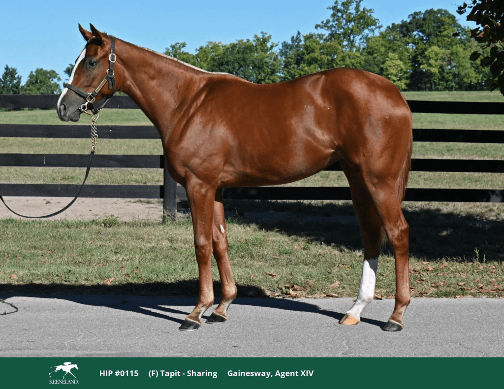 Hip 115 – Tapit Filly Out of Second-Generation Breeders’ Cup Winner Sharing